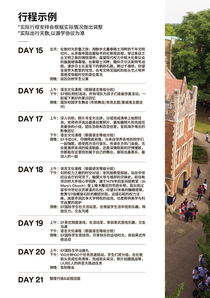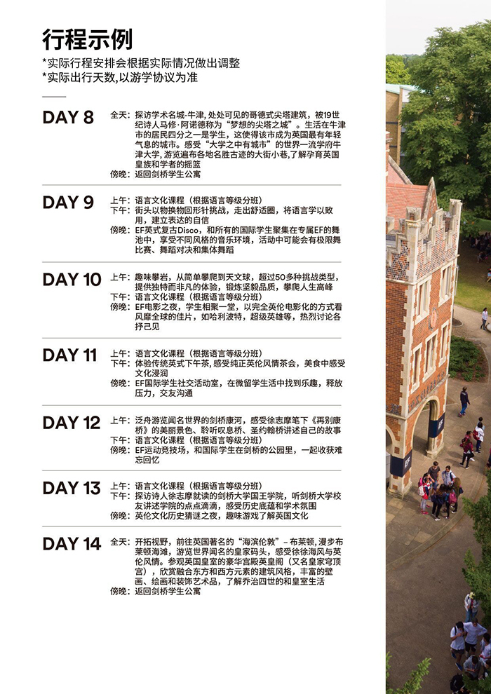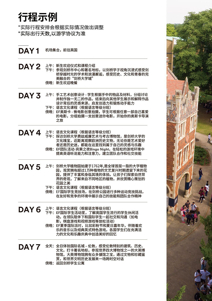 2、国际航班和当地交通:从国内机场出发直到EF海外营地安排航班和转机,我们的EF领队会全程陪同