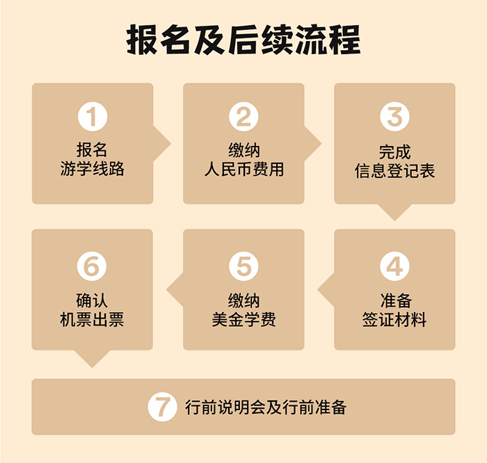 费用不含:个人支出、通讯费、学生从各地至出发地的交通费、护照办理费、学生前往签证中心采集指纹/面签的食宿交通费,住宿门卡和钥匙可能存在的押金,以及由个人原因引起的额外费用(如洗衣费、付费电视节目、寻回个人遗失物品所产生的相关费用、因个人疏忽、违章或违法引起境外学校、寄宿家庭、酒店、营地损失赔偿的费用等)
