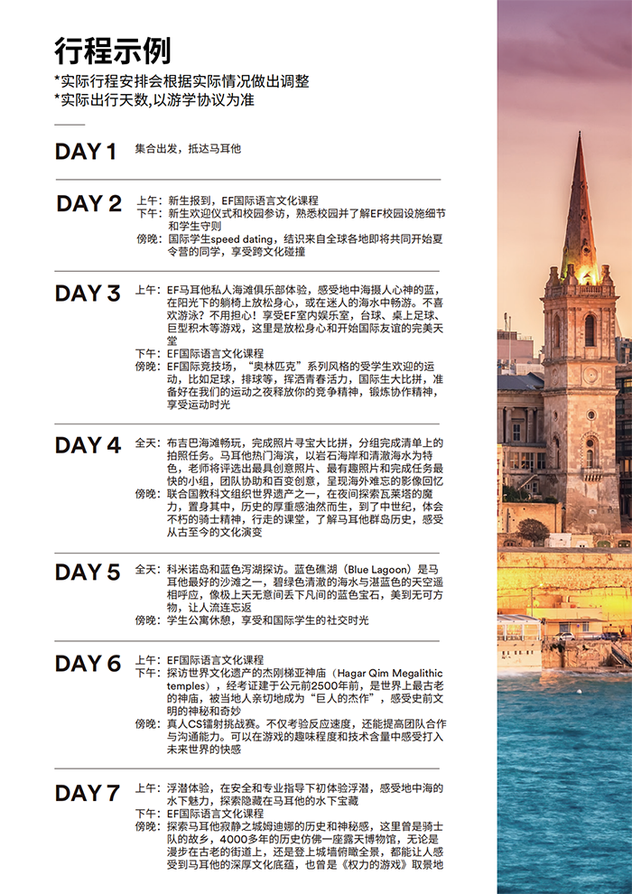 2、国际航班和当地交通:从国内机场出发直到EF海外营地安排航班和转机,我们的EF领队会全程陪同