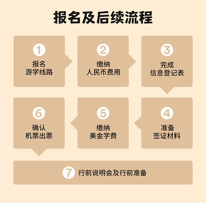 费用不含:个人支出、通讯费、学生从各地至出发地的交通费、护照办理费、学生前往签证中心采集指纹/面签的食宿交通费,住宿门卡和钥匙可能存在的押金,以及由个人原因引起的额外费用(如洗衣费、付费电视节目、寻回个人遗失物品所产生的相关费用、因个人疏忽、违章或违法引起境外学校、寄宿家庭、酒店、营地损失赔偿的费用等)