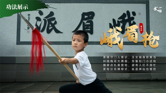 峨眉枪以扎、拦、拿、劈、圈为核心,枪法精准、步法稳健,刚柔相济。