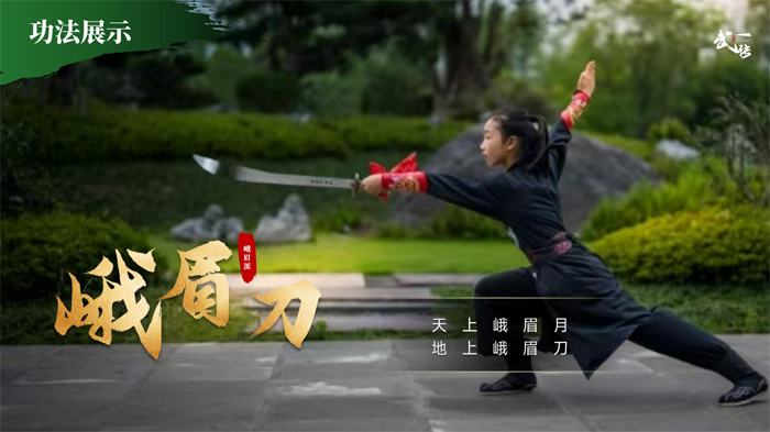 峨眉刀刚劲灵动,以劈、砍、撩、斩、点、扎为主,身法灵活、步随身换.练腕力、腰劲与协调性,