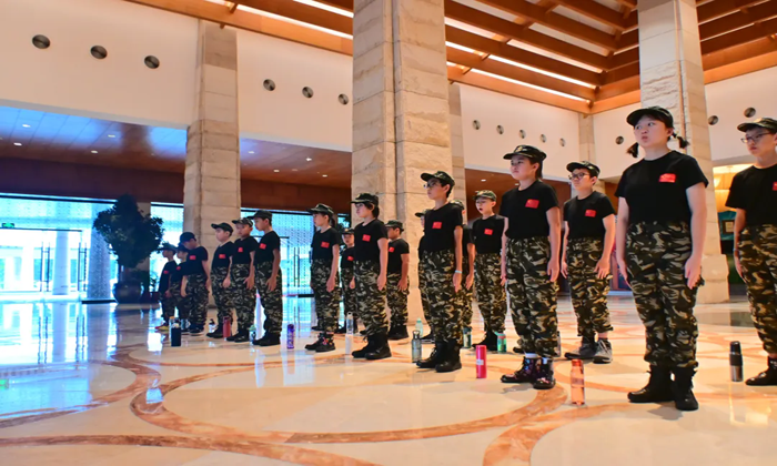 营员们入住观澜湖度假酒店,三人一间,一人一床,酒店24小时安保人员值班,男教官、女老师晚上进行查房。