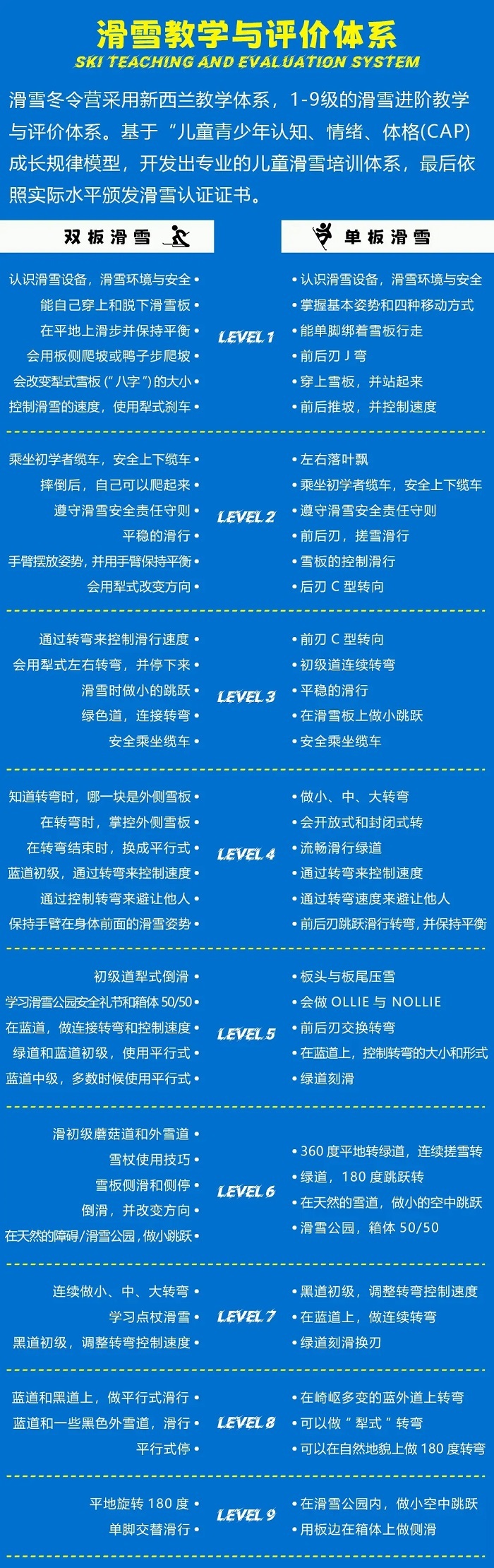 1、滑雪教练师资配比(双板1:5;单/双板1:3);