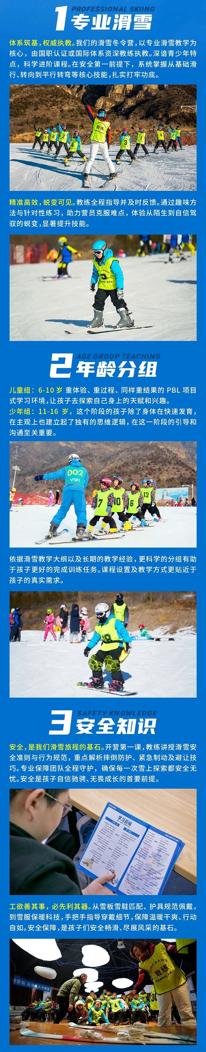 1.滑雪营接受6-16岁儿童独立参加。