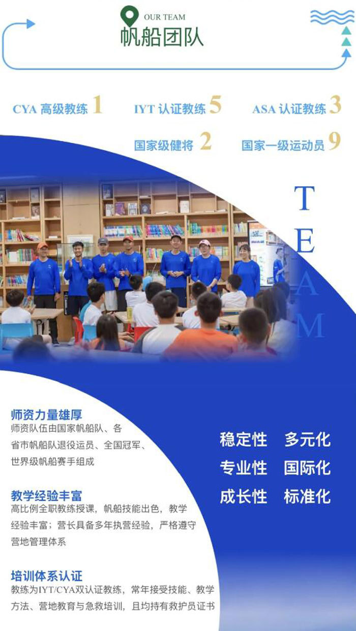 师资配比:帆船教练配比1:4