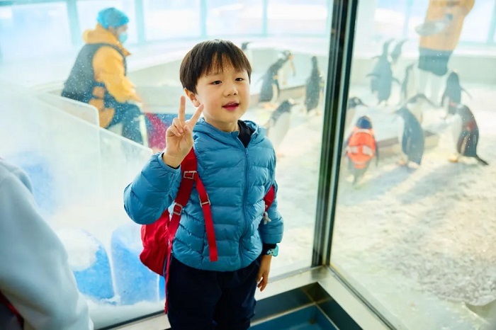 我们将解了南极科考站的发展历程、不同的南极科考站,还能在不同的观察站观察到有趣的小企鹅。透过透明的玻璃近距离观察到小企鹅,还学到了不同种类企鹅的科普知识,很有趣。