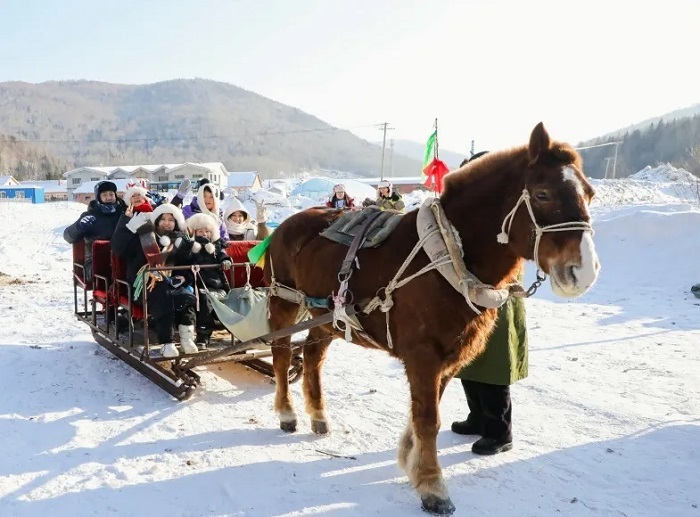 驾马拉爬犁、破冰冬捕,