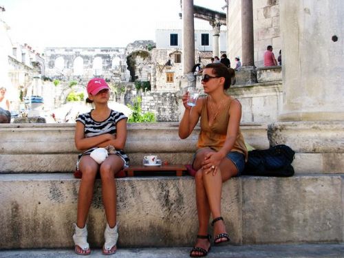 在古城民居旁,罗马遗迹剥落的残石,那是历史的琐碎。斯普利特之所以迷人,在于她不刻意保存那浪漫的理想过去,他们的生活始于千年废墟,和谐并共存。这两位游客显得很悠闲。