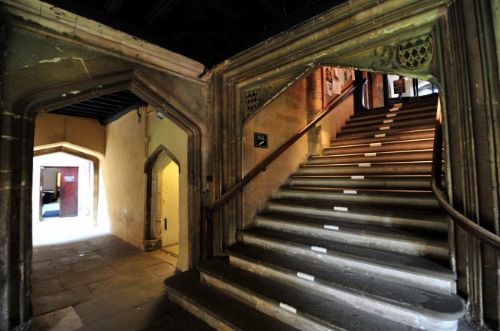 莫德林学院的年纪和默顿差不多,许多建筑都是中世纪留下来的。这楼梯是通向食堂的。