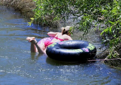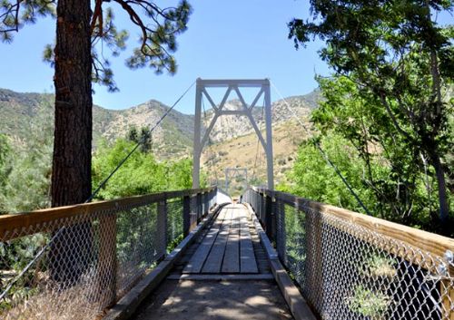 吃完汉堡,我们随便转转,意外地发现在那几栋房子的后面有一座吊桥.我们走上吊桥,克恩河(kern river)在桥下欢快地流淌着.河水中生长着一丛丛的灌木丛.周围十分的安静,只有一个姑娘在河里戏水,远处河边有个把钓鱼的人.我们在桥上站了一会儿,享受着这大自然带给我们的这份宁静.