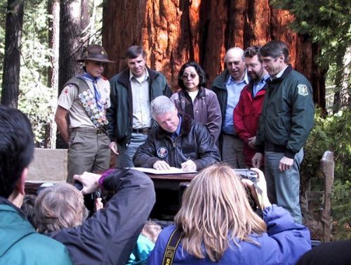 2000年4月,就在这片林子里的一棵大树前,当时的总统克林顿签署了文件,将这里和附近的共38片林子列为巨杉国家纪念地(giant sequoia national monument).在这之前,这些林子虽然属于国家森林,但仍许可商业的砍伐活动.而划为国家纪念地后,可以限制商业砍伐,使这些古树林得到进一步的保护.