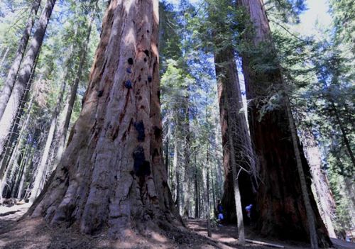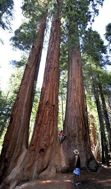 林子里还有一些少见的连体巨杉.早期这些树在很近的距离同时生长,随着树围的增加,树皮的粘液把它们粘合在了一起。