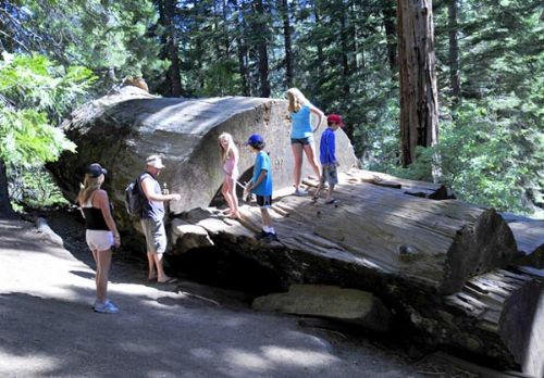 除了正在生长的巨杉,我们还看到了一些倒下的巨树和树根.可喜的是,一些年轻的巨杉也在茁壮成长.巨杉林需要新陈代谢,而它们的再生是件很不容易的事.由于巨杉的种子被包裹在坚硬的松壳里,必须借助外力才能被释放出来.这些自然生长的巨杉主要借助三种外力,一是吃松果的松鼠,二是一种在松壳上产卵的甲虫,第三则是山火.山火虽然听起来很可怕,但对这些巨杉的再生却起着重要的作用.自然的山火可以把松壳烤干开裂,使里面的种子暴露出来.同时山火还可以清除过密的树林,使种子有地方发芽生长.现在由于人口的增加,人们住的离森林越来越近,为保护人类的住房和财产,很多自然的山火被人为的扑灭.大自然有着它自己的生存法则,缺乏自然的山火会使林子长的过密,一但着起来就是大火,不仅很难扑灭,而且还会彻底烧毁山林.近些年来,附近的国家公园已经开始有控制地人为放火,来模拟自然的造林过程。