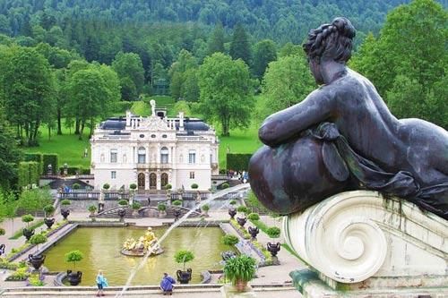 当我们初抵慕尼黑,登上楚格峰领略德国最高峰上的冰雪世界并在阿尔卑斯山下的壁画小镇徜徉之后,我们意犹未尽,又驱车向大山深处的林德霍夫宫开去。