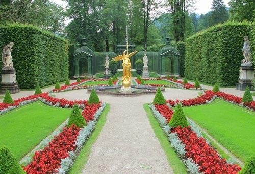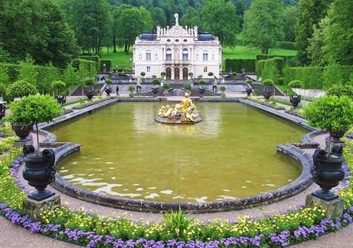 林德霍夫宫本身的建筑并不算宏伟,但是周围的花园相对于这座宫殿的规模来说显得很大,并且依山而建,很好的利用了山谷内的地势。由于受到凡尔赛宫花园的影响,这里的巴洛克花园很有点法国味儿。