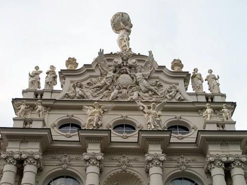 宫殿外墙被许多华丽的雕塑装饰着,让人眼花缭乱。提起“疯子”国王这个称号,对巴伐利亚历史稍有了解的人都会知道指的是谁。巴伐利亚王国历代的国王很多,其中不乏英明君主,但是到了今天名字最为人们熟知的只有一个,那就是一生富有悲剧色彩的“疯子国王”路德维希二世。