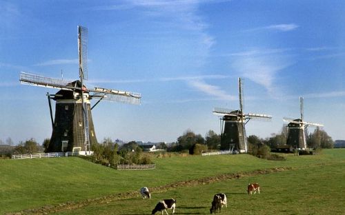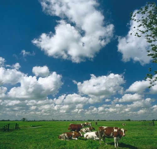 车子往桑安斯风车村驶去,我的眼神全被眼前的风景吸引,每一眼,都可以做一幅画,丝毫无需修饰。微风徐徐,夹杂着原味荷兰的清新牧草香,飞扬起我的头发。云朵如绵软的糖,一团一团地缀在蓝天中,天底下的牧场透着夏初青油油的绿色。憨厚的奶牛悠闲地品尝着自己的佳肴。据说荷兰每年出口草籽去新西兰,可是留在荷兰的草籽品质更佳,纯净的自然环境让荷兰的奶制品特别地便宜。一欧元可以买到两升装的鲜奶,超市里更有各式各样的cheese,品质绝对无可挑剔。