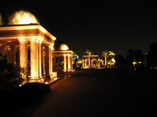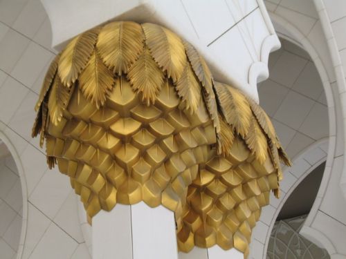 迴廊柱头上黄金做的椰树叶。所有能见到的黄色金属全是纯金打造。整幢建筑是由大理石修建而成....