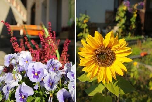 那天在一个山脚的路边饭店午餐,阳光极好,紧靠我们的窗台,窗内是花,窗外也是花。其实不是不可惜那天把最好的光线都花在了吃饭时间,以至于后来到了那个被雪山和鲜花簇拥着的小镇bergun的时候都没阳光了。