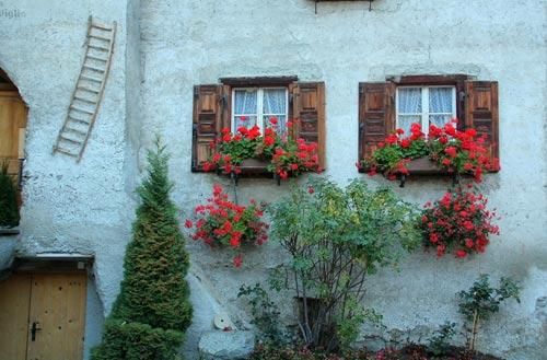 瑞士吸引我的有两种美:一种是雄性的大气磅礴的,雪峰冰河峭壁云海,那样大开大阖地老天荒的画面,直撼人心;一种是女性的温柔恬静的,那些庭前院后窗台上阳台上,无处不在的鲜花的笑颜,温暖你心。