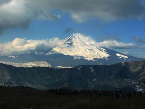 上次来箱根赶上阴天,见到富士山仅仅5秒钟。记得是在六合目上,被重重迷雾包围的富士山刚露出头闪了一下,就又钻进迷雾再也不露。这回天好的出奇!我围着富士山转了将近一天,终于可以欣赏它的全貌。