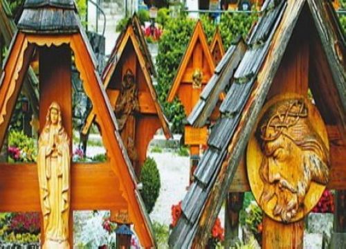 他们的上方大多呈三角屋顶状,主体刻有各种各样的艺术造型,诸如圣母像、小天使、花朵 等。人们用这些木头墓碑来纪念亲人。正如这里的学者所说,哈尔施塔特镇随处可见的木头,让小镇居民的淳朴表露无遗。