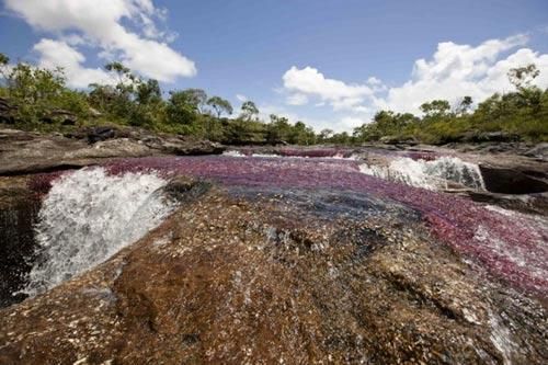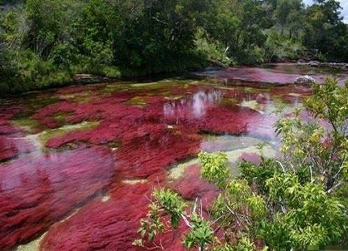 哥伦比亚,有一条名叫cano cristales的河流,这条河长约100公里,位于sierra de lamacarena。人们把它称为彩虹河或者五色河,由于它在每年的一段时期内会显现好几种颜色(河里有不同颜色的藻类植物,红色,黄色,绿色等),因此,人们把它称为彩虹河或者五色河。