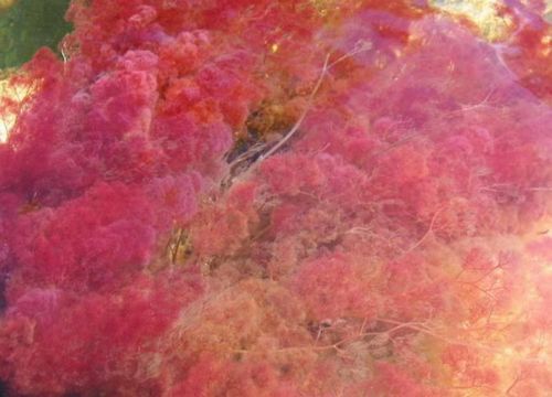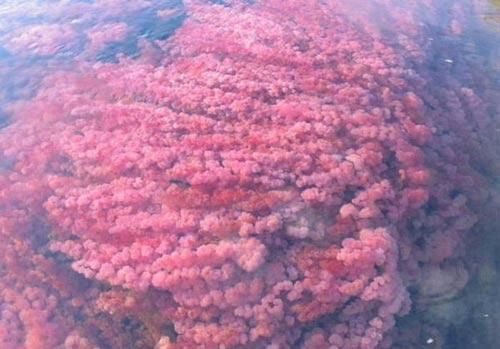 颜色从蓝到绿,又从绿到红,每一团海藻有有深浅不一的影子作陪衬,在那几天里河水显得五彩斑斓。可惜彩色的河水只能坚持短短的几天,真是昙花一现可惜了。