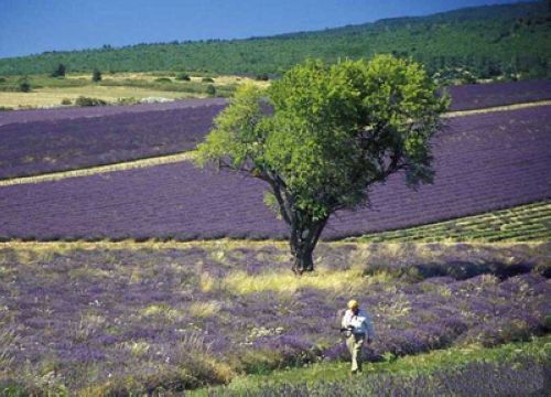 七、八月间,薰衣草迎风绽放,浓艳色彩装饰翠绿的山谷,仿佛穿上紫色外套。薰衣草在风中摇曳,微辛辣香味混杂青草芬芳,交织成法国南部最特有的气息。