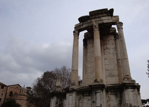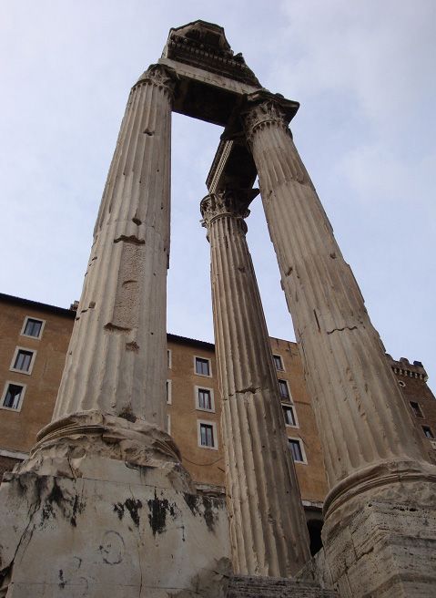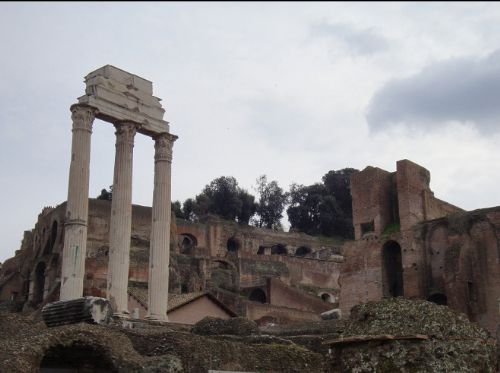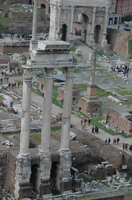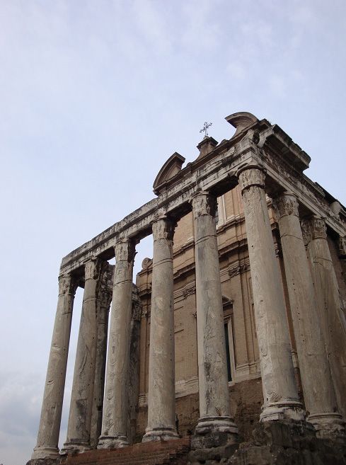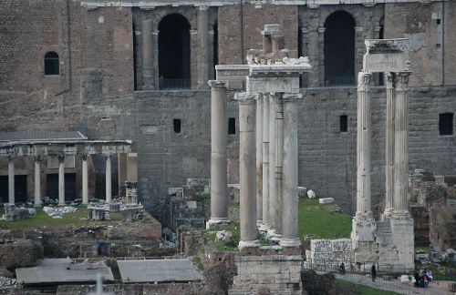 言归正传。与罗马竞技场相比,古罗马广场的保存完好率要低不少。这里到处是三三两两竖立的柱子,表明历史上有着辉煌建筑的存在。