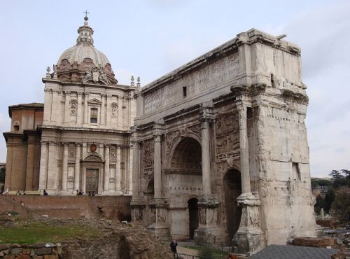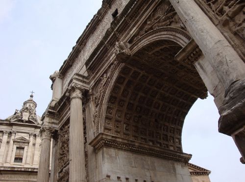 这是我今天见到的第三座凯旋门:塞维鲁凯旋门,每一面有四个柱子。