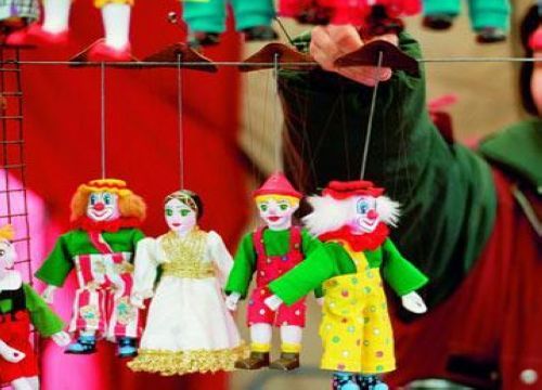 布拉格最多的是提线木偶,顾名思义,木偶的四肢和头部被线提起来,而这些线最终在木偶头部上方的总控制轴交汇,人们可以利用这一控制轴来操纵木偶。