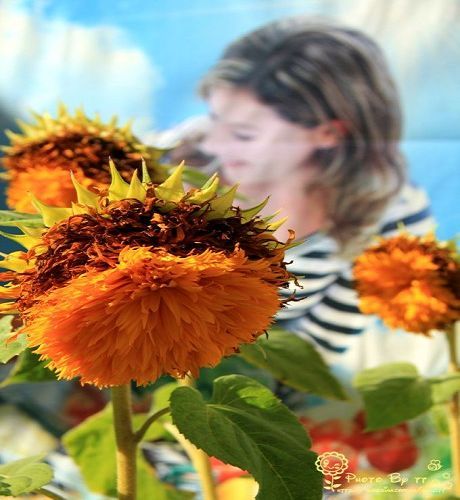 小镇子只有一个超市,门口盛开的向日葵,大家见过这个品种吗?