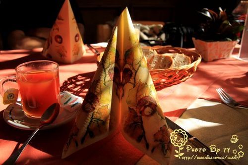 在我们就坐后,服务员依次摆放刀叉,然后认真地为每个人折纸巾。秋天,是栗子成熟的季节。