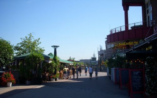 穿过这条酒吧餐馆一条街,前方就是水族馆。