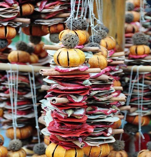 这是我见过的,最有创意的设计, 穿成串的,有橘子皮、辣椒、肉桂、香叶....还有啥?