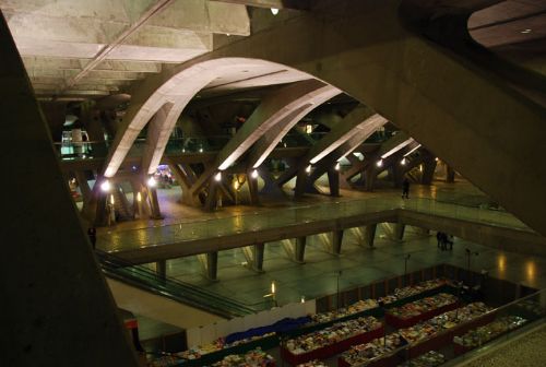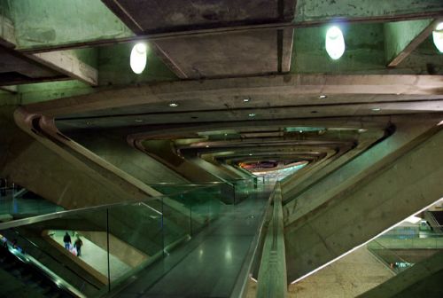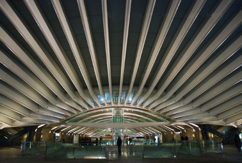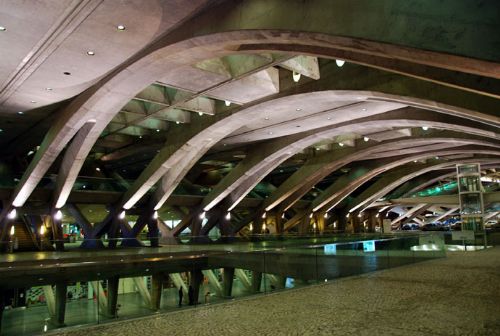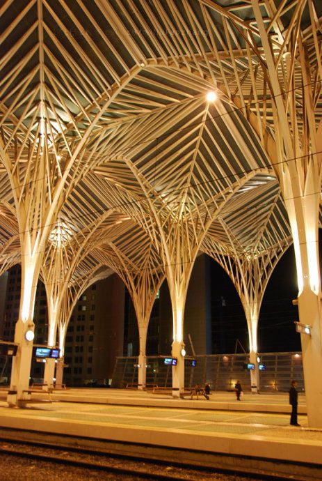 东方火车站(orient station),其实最初是为了98年世博会所需的交通转运站而拟定,但卡拉特拉瓦(calatrava)的方案并没有只是仅仅满足任务书的需要,calatrava把该车站设计当成一个城市规划来命题,试图在里斯本北方的一个工业废弃地上,创造出一片城市沃土。calatrava仔细整理了废弃港口周遭的环境,最后建立起一个完善的交通枢纽,不仅和穿梭各城市间的高速火车衔接在一起,更将普通客车、公共汽车、地下停车场以及城市轻轨线等整合在一块。还记得卡拉老师吗?我在前面的西班牙瓦伦西亚曾写到过他,这位“结构诗人”。