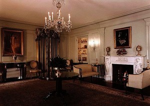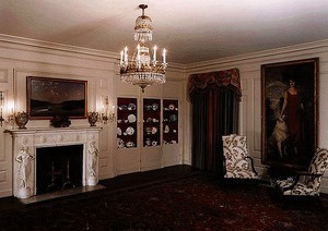 白宫收藏有很多艺术品,陈设在各个厅内有珍贵的金银器皿、瓷器等。一层的国会图书馆有两幅1821年绘制的印第安首领的画像,描述了当时的美国总统为了西部开发,邀请了印第安首领到美国的大城市访问、谈判的场面。收藏品中有来自中国的瓷器和地毯。
