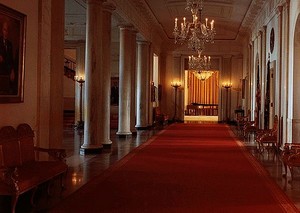 白宫与想像中的地位比显得很平凡,甚至没有什么可以描绘之处。但它给人们以很大的想像空间。一座同全世界的神经相通的建筑,任凭人们放松地游览,白宫的主人就在隔壁办公,参观者走后,白宫的主人还要在刚刚开放过的房间里会客、吃饭,似乎有些不可思议。
