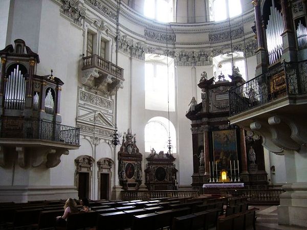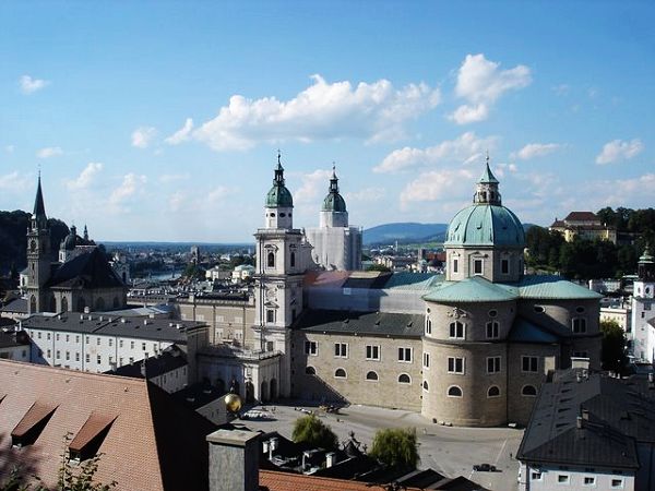 教堂博物馆中有丰富的藏品。城中最重要的宗教建筑物是天主教的中心萨尔茨堡大教堂。它以其雄伟的立面和巨大的圆形屋顶体现了阿尔卑斯山一侧早期巴洛克风格雄伟的特征。自它落成之日起,它就与教廷王侯的一切紧密联系在一起。从教堂在大火中被烧毁,到被重建和扩建,这一系列过程中无一不见证了萨尔茨堡教主的至高无上的权力与独立性。