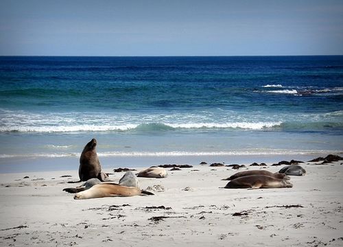 袋鼠岛上的海豹湾,却是海狮们的安乐窝。这里是澳大利亚第三大海狮种群和保护地。肥硕的海狮们憨态可掬,他们或者横七竖八闷头大睡,或者缓慢爬行,或者三五成群闹成一团。
