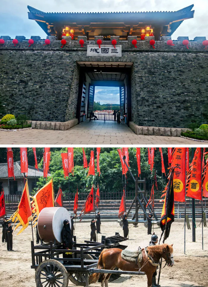 三国城 是中国最早建成的历史文化、影视文化与旅游文化完美结合的主题景区,每年吸引着成百上千个摄制组在这里拍摄 1000 部及以上的电视剧和电影,被誉为 “东方好莱坞”。