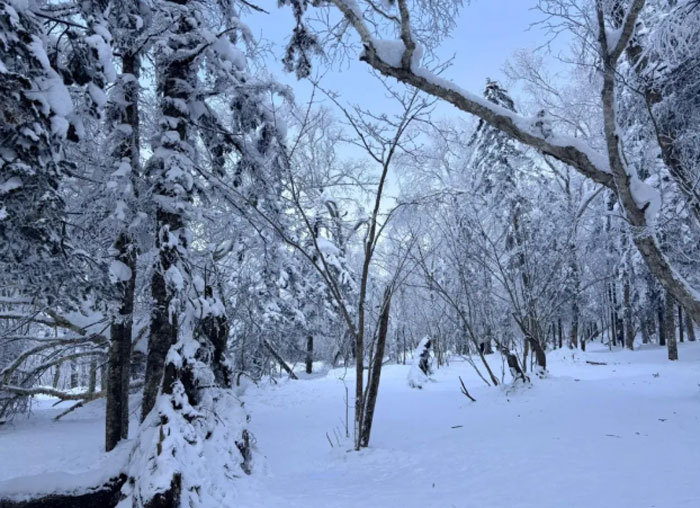 跨上雪地摩托,引擎轰鸣,瞬间打破雪野的寂静。沿着蜿蜒曲折的雪道疾驰,两侧是高耸入云、挂满积雪的参天大树,雪雾在车轮下飞溅,仿佛置身于白色的梦幻隧道。