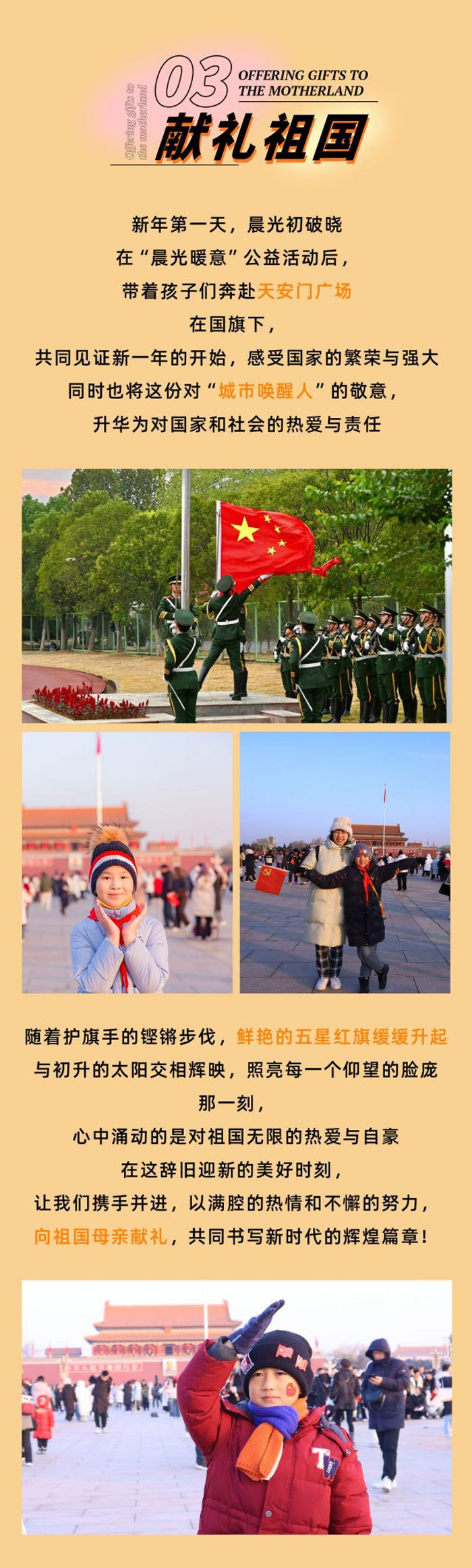 12月25日(提前7天)前报名的家庭,由我们统一预约天安门广场升旗活动;25日后报名的,需自行按官网余票情况预约。