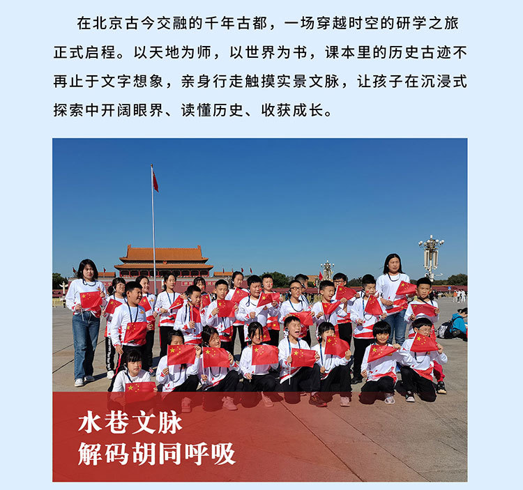 课 1:开营仪式标志着毕业之旅的正式开始,孩子们以班级或其他形式组成团队或小组,共同面对接下来既有趣又充满挑战的研学之旅。研学导师们也将成为大家的同行好友,提前公布行程安排、研学任务、研学规则等,既为即将到来的北京研学营的独特体验,又为大家的安全保驾护航。相信在接下来的研学活动中,学子们将收获满满的知识与技能,留下一段难忘的回忆。