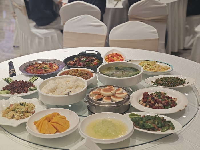 餐饮标准:桌餐,荤素搭配,营养均衡。