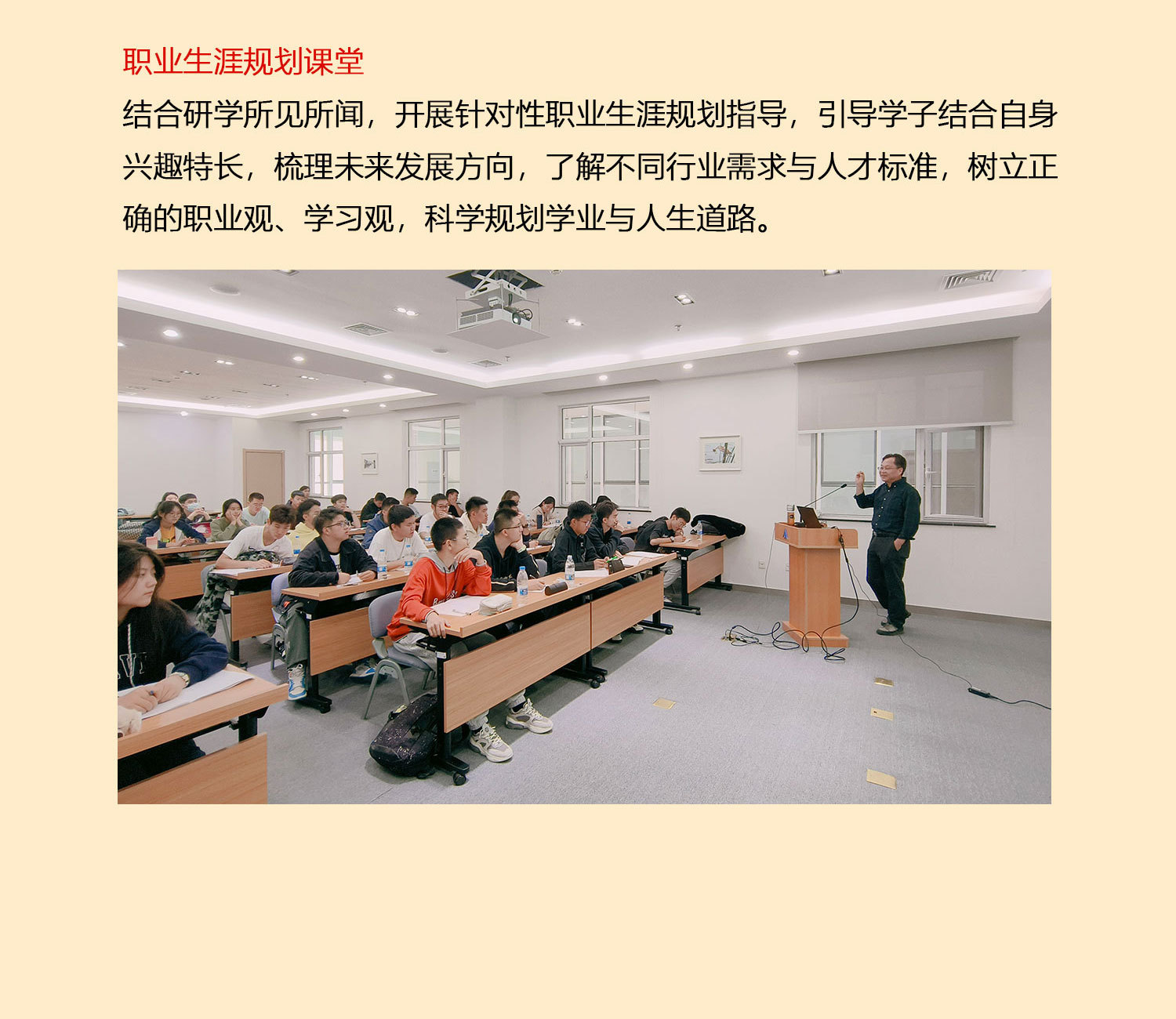 要做生涯规划,在教授的讲解下使学生明确方向,激发潜能、科学的规划未来,为