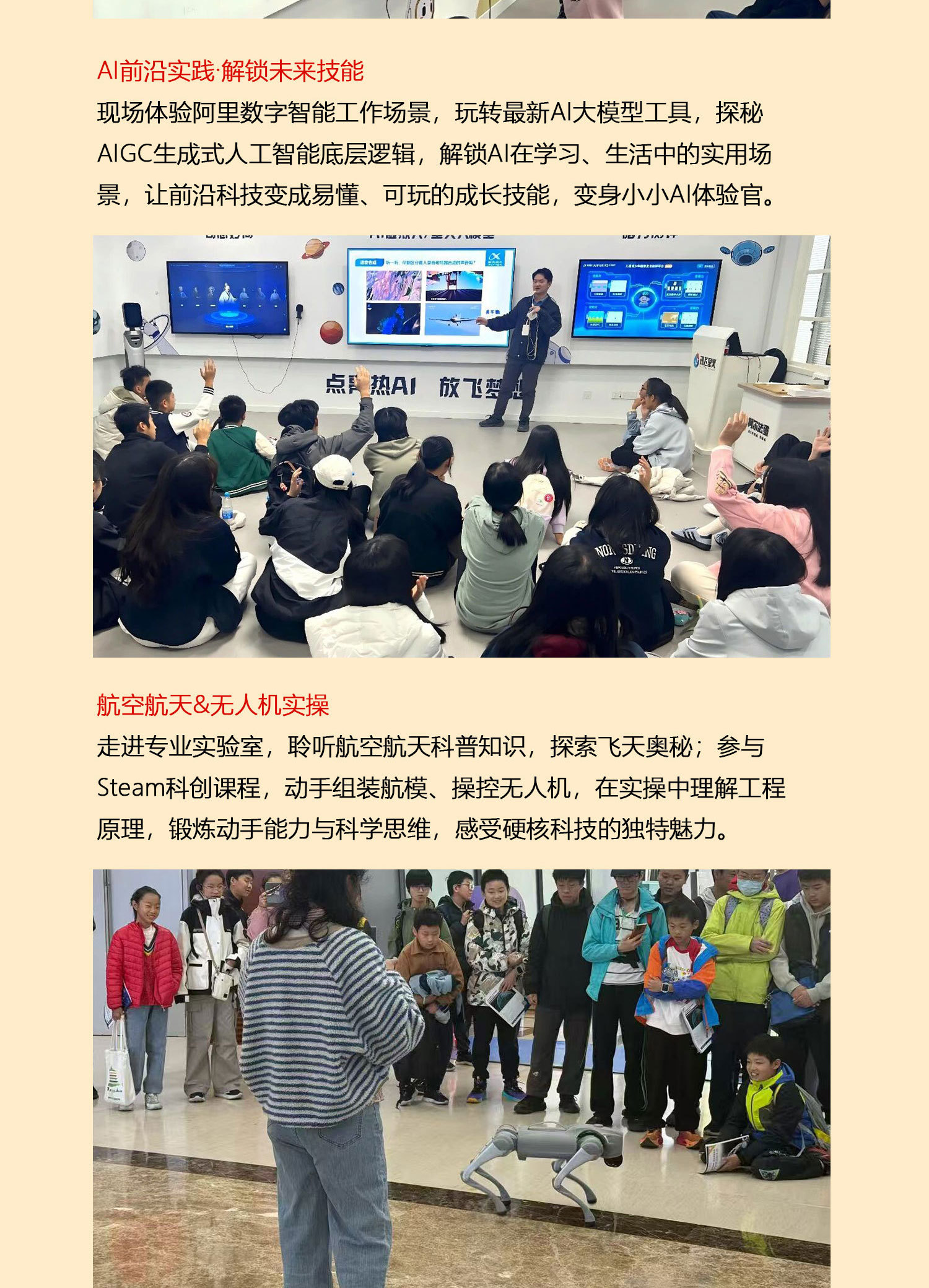 小学生:人工智能的秘密、中学生:星火大模型的生成、高中生:AI 创新职业生涯规划、