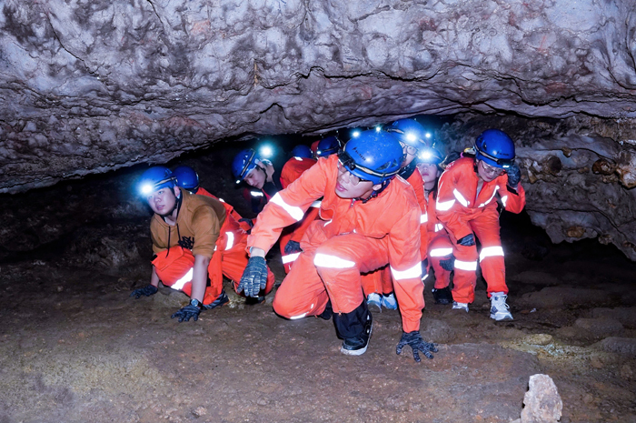 通过与同伴一起攀爬洞穴,增强学生们的团队意识和沟通交流的能力;